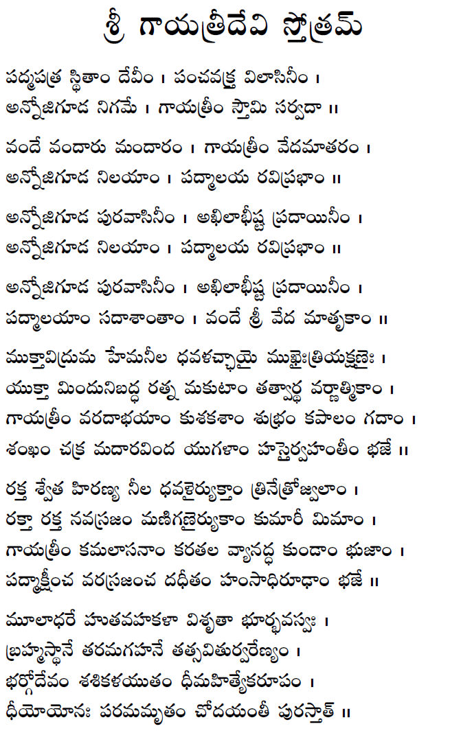 శ్రీ గాయత్రీదేవి స్తోత్రం