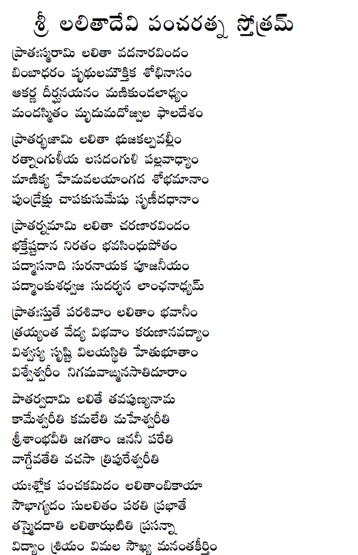 శ్రీ లలితాదేవి పంచరత్న స్తోత్రం